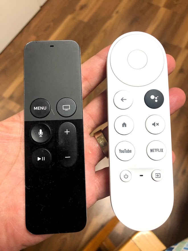 리모컨의 경우도 터치패드 형식의 애플티비 리모컨 보다 4방향 지시키를 클릭 하는 구글의 리모컨이 더 편리했구요. 애플의 리모컨은 터치패드로 화살표를 버튼으로 옮긴 후 버튼을 클릭 하면 화살표가 비껴나가 버리기 일쑤였습니다. 클릭해야 할 버튼이 티비 화면 가득히 자유분방하게 배치되어 있다면 애플티비가 더 편리할 수 있겠지만 티비에서 사용하는 앱들은 사실상 그렇지 않잖아요?