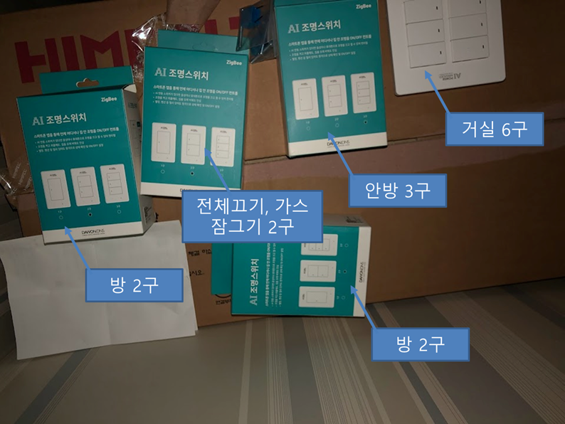 일단 Zigbee 스위치와 휴젠뜨를 별도로 구매해서 공사 현장에 전달하고 설치할 장소를 전달해 드렸고 별도의 시공비 추가 없이 전달된 스위치와 환풍기를 설치하는 것으로 해주셨습니다. 공사 후 설치를 별도로 하려면 설치비가 따로 들기도 하고 예서 마감한 인테리어를 다시 뜯어야 하는 가슴 아픈 상황이 생길 수 있으니 이런건 미리 미리 챙기는것이 도움이 될꺼 같더군요