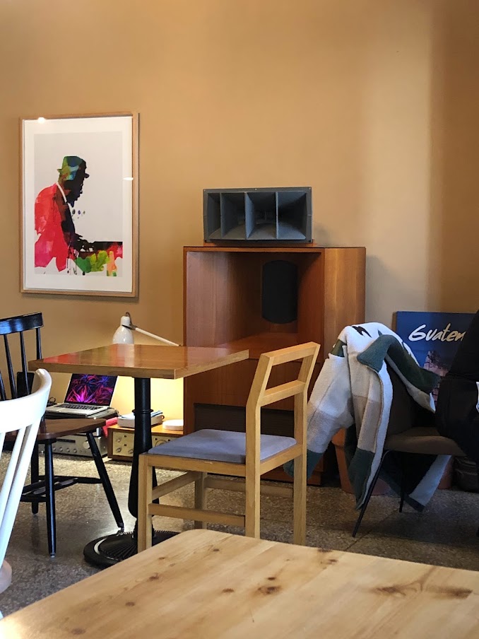 주로 재즈 음악이 흘러 나오는데 극장용으로 쓰이던 혼스피커 답게 풍부한 소리가 압권입니다.
