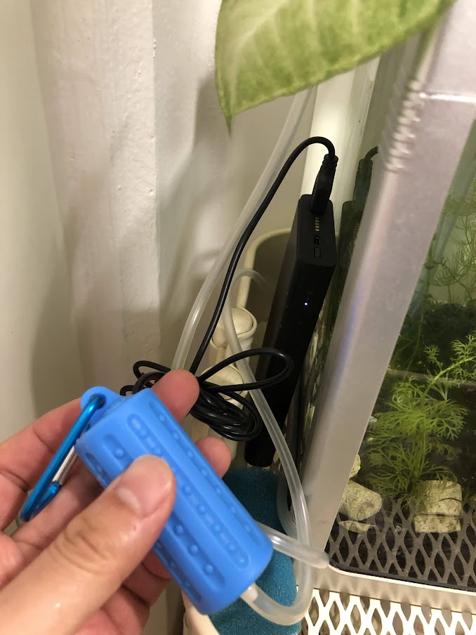 이 기포기를 10000mmAh 짜리 샤오미 보조배터리에 연결해서 저면여과기를 돌려 봤습니다.