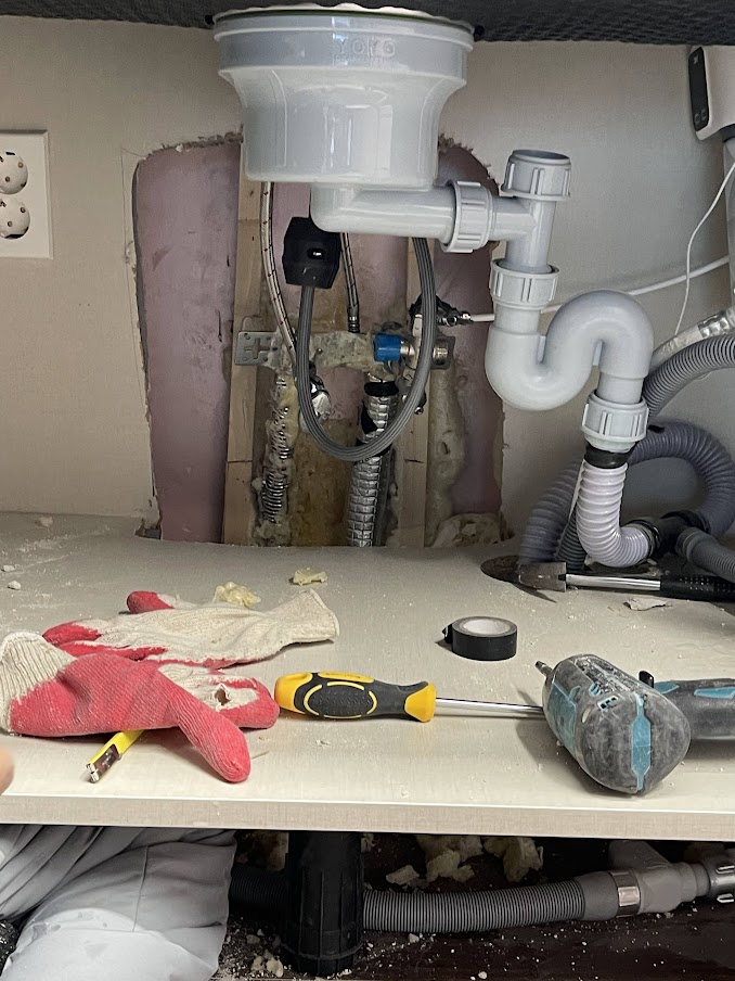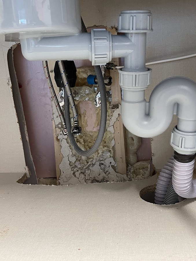 이런 형식으로 다수의 현장을 공사 했지만 실내가 언 경우는 없었다며 사과와 함께 현장을 확인한 후 내부적으로 어떤 조치가 가능한지 파악해서 연락을 주겠다며 돌아갔습니다. 이틀후 기존 단열을 단단히 하긴 했지만 좀 더 단열을 할 필요가 있으니 싱크대 뒷판과 단열을 위해 시공한 가벽을 일부 제거하고 수도관 단열제를 실외 수도관에 시공하는걸로 보강하여 다시 시공 하는 계획을 이야기 해주셨습니다