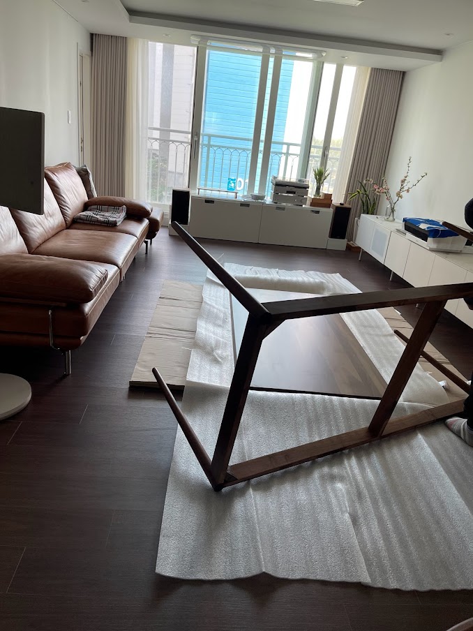 마눌님은 다 계획이 있으셨습니다. 원래 사용하던 식탁은 가성비 넘치는 이케아의 4인용 테이블이었습니다만 새로 인테리어한 우리집에는 좀 더 나은 녀석이 필요했죠