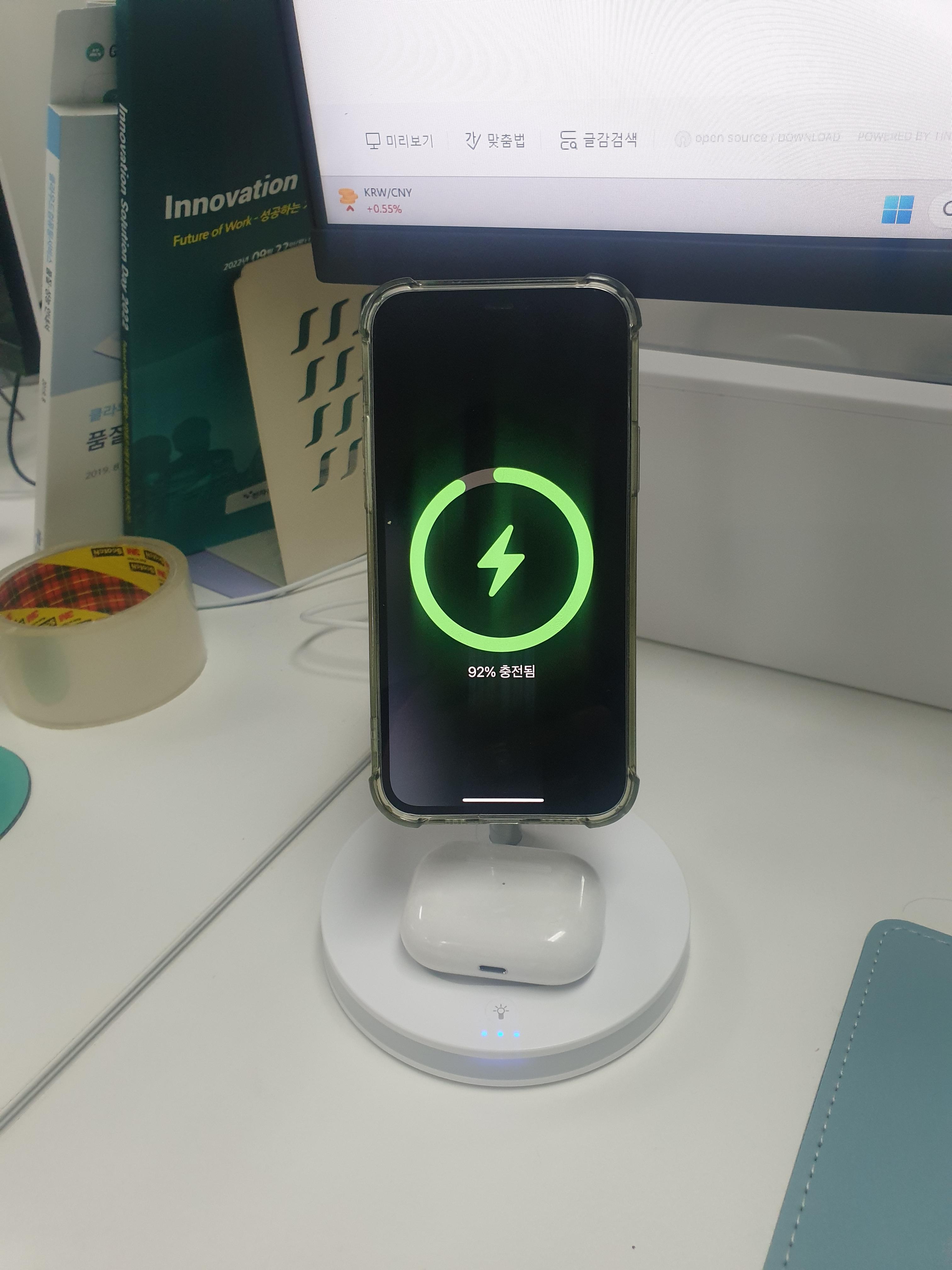 5년전에 구매해서 사용하던 무선충전기는 여전히 잘 작동하지만 그동안 크기가 자꾸만 변한 아이폰은 거치를 해놔도 무선충전 스팟을 벗어나기 일쑤였고 당연히 충전 되어 있을꺼라고 생각하고 들고 나간 핸드폰의 베터리가 25%인 경우를 몇번 당하자 무선충전기를 교체 하기로 결심했습니다.