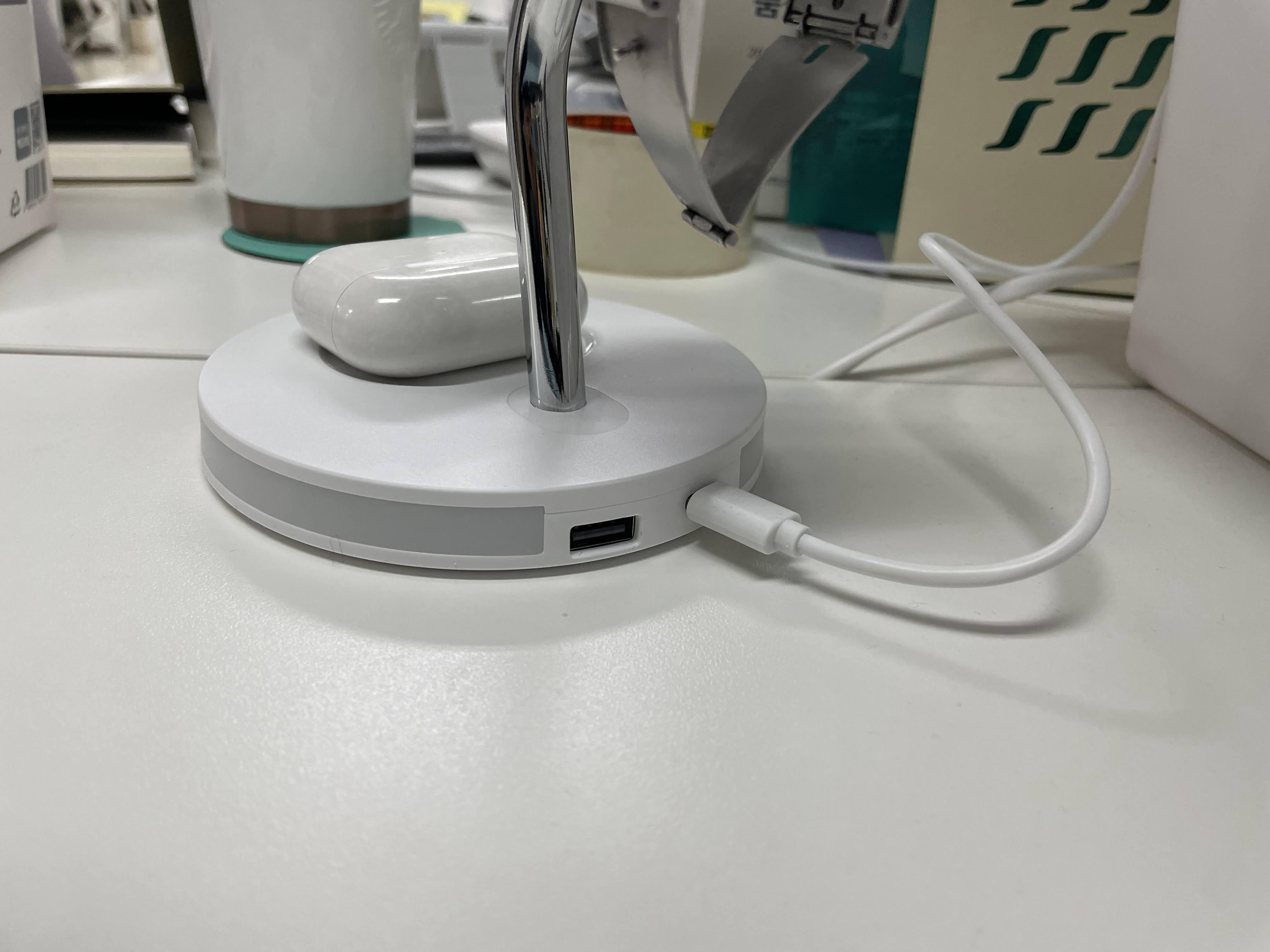 아이폰과 에어팟 그리고 애플워치를 충전하고 저는 별로 쓸일이 없지만 3단계로 밝기가 조절 되는 램프 기능까지 포함하고 있습니다.