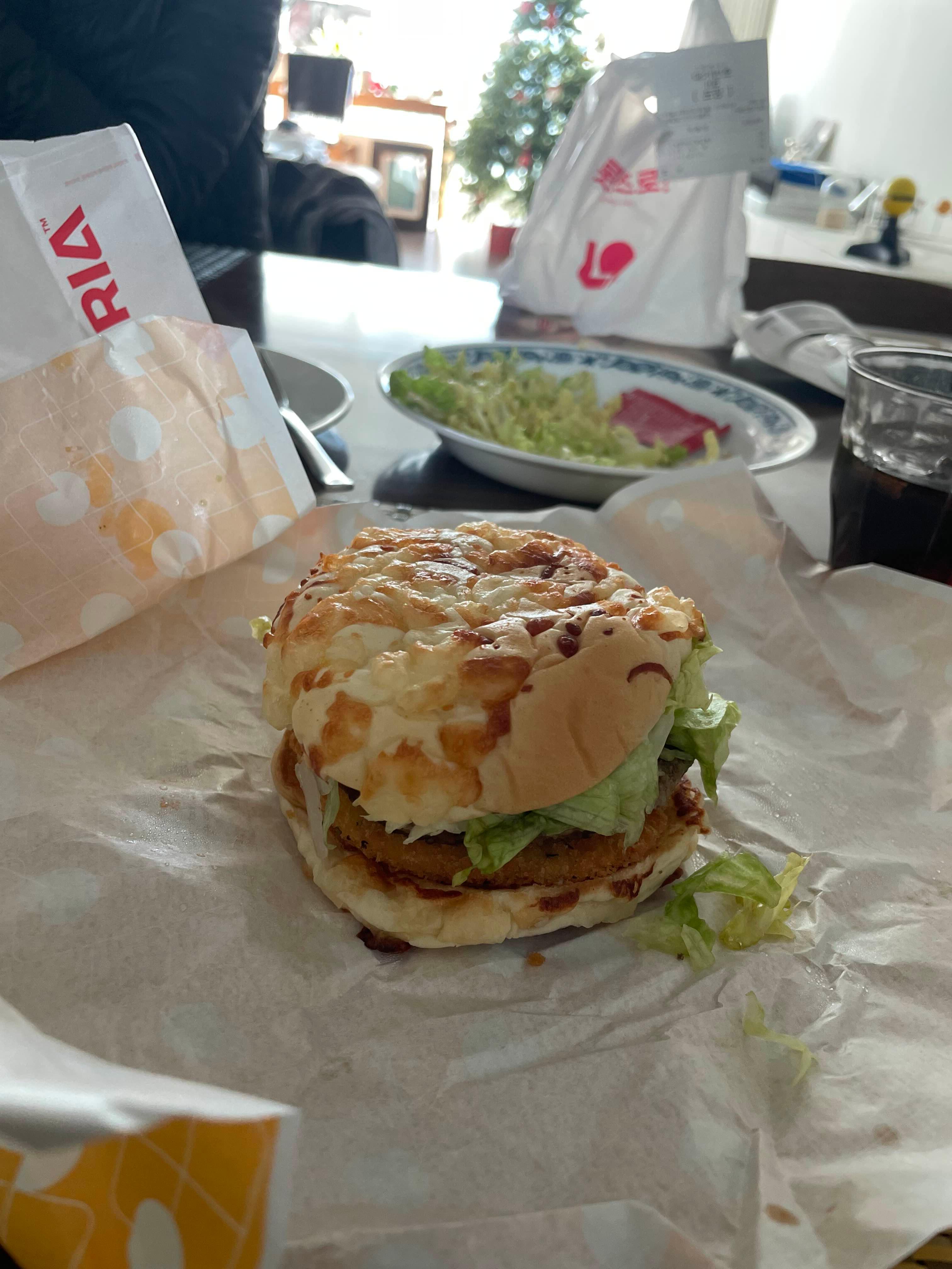 먹어본 결과 이걸 햄버거라고 해야 하나 하는 생각이 들더군요 번도 햄버거라고 하기엔 부드럽고 치즈패티(?)때문에 엄청 고소한 맛에 튀긴것 같은 식감도 독특하구요~
