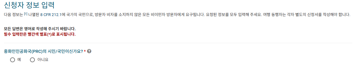 체류지는 예약한 호텔을 적고 미국내 연락처를 적는 란에는 저는 자유여행이라 제 이름을 적었습니다.